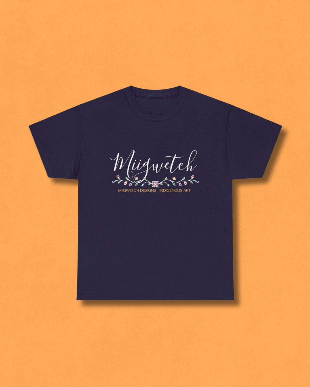 Show your pride in Miigwetch Designs art with this Unisex Cotton Tee. This T-shirt is perfect for those who appreciate high-quality, sustainable fabric and want to make a statement with their clothing choices. Ideal for those who value comfort, sustainability, and ethical production practices.